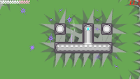 Playing it, it seems to have a nice balance to me. The monsters are challenging without being overwhelming (at least not until you have had a chance to power up), the constant need to extend your lifespan means there is little downtime, and it's challenging while possible to survive for more than an hour with good play. I was even able to squeeze a couple of covert pinball references into the game's interface. I'm particularly proud of the background generator, which is able to produce a wide variety of interesting dynamically-generated looks for areas for relatively little processor time. I post some of the more interesting screens here.