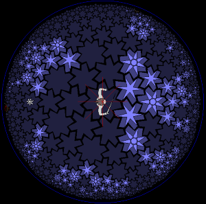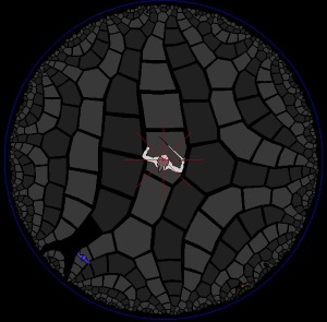 Other consequences of the hyperbolic plane are that circles are much larger than you might expect. There are other interesting shapes, and consequences of those shapes, too. Zeno Rogue posted on his site an excellent light math description of some of the shapes that can be encountered, written by Fulgur14, many of which serve as the basis of terrain generation in the advanced lands.